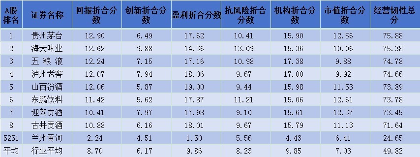 表:食品饮料行业韧性评价总分居前的企业